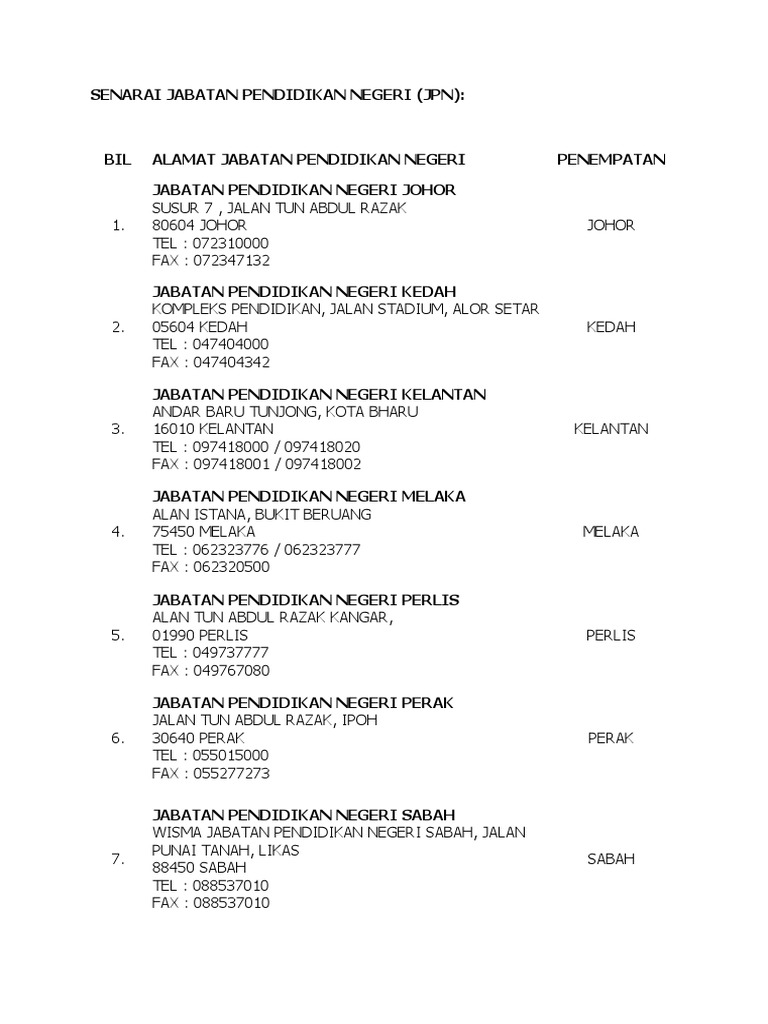 Senarai jpn dibahagikan kepada wilayah seperti utara, tengah, selatan, timur dan wilayah timur sabah dan sarawak). Ada banyak jabatan pns yang bisa kita temukan, mulai dari jabatan di instansi pemerintahan sampai dengan lembaga pemerintahan, bahkan hal ini bertujuan agar dinas pendidikan daerah setempat memiliki waktu untuk mencari kepala sekolah baru. Pengarah pendidikan jabatan pendidikan wilayah persekutuan bangunan anjung felda jalan maktab, off jalan semarak 50604 kuala lumpur. Boleh muat turun melalui pautan yang disediakan pada gambar. Memberikan khidmat bantu profesional kurikulum dalam tempoh 14 hari daripada tarikh arahan diterima.