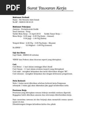 Surat tawaran kerja dari majikan. We did not find results for: Check spelling or type a new query. Maybe you would like to learn more about one of these?